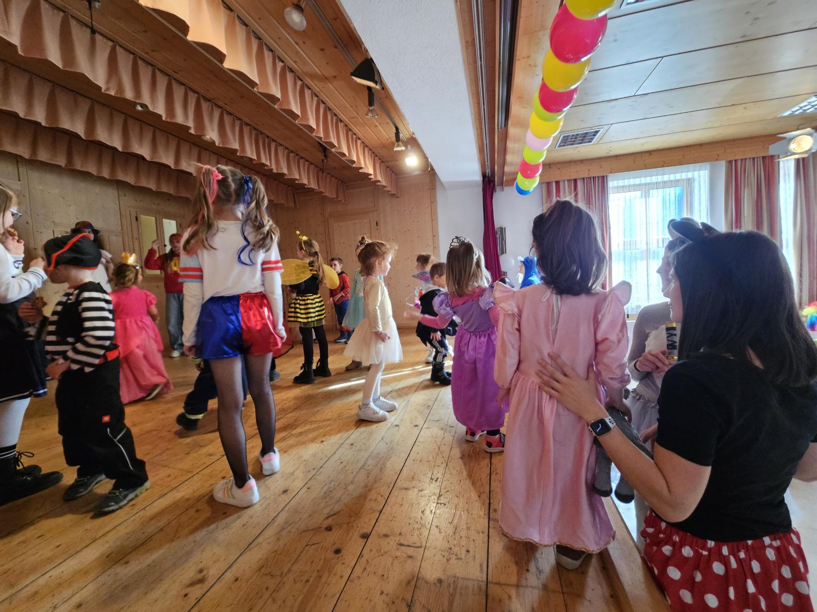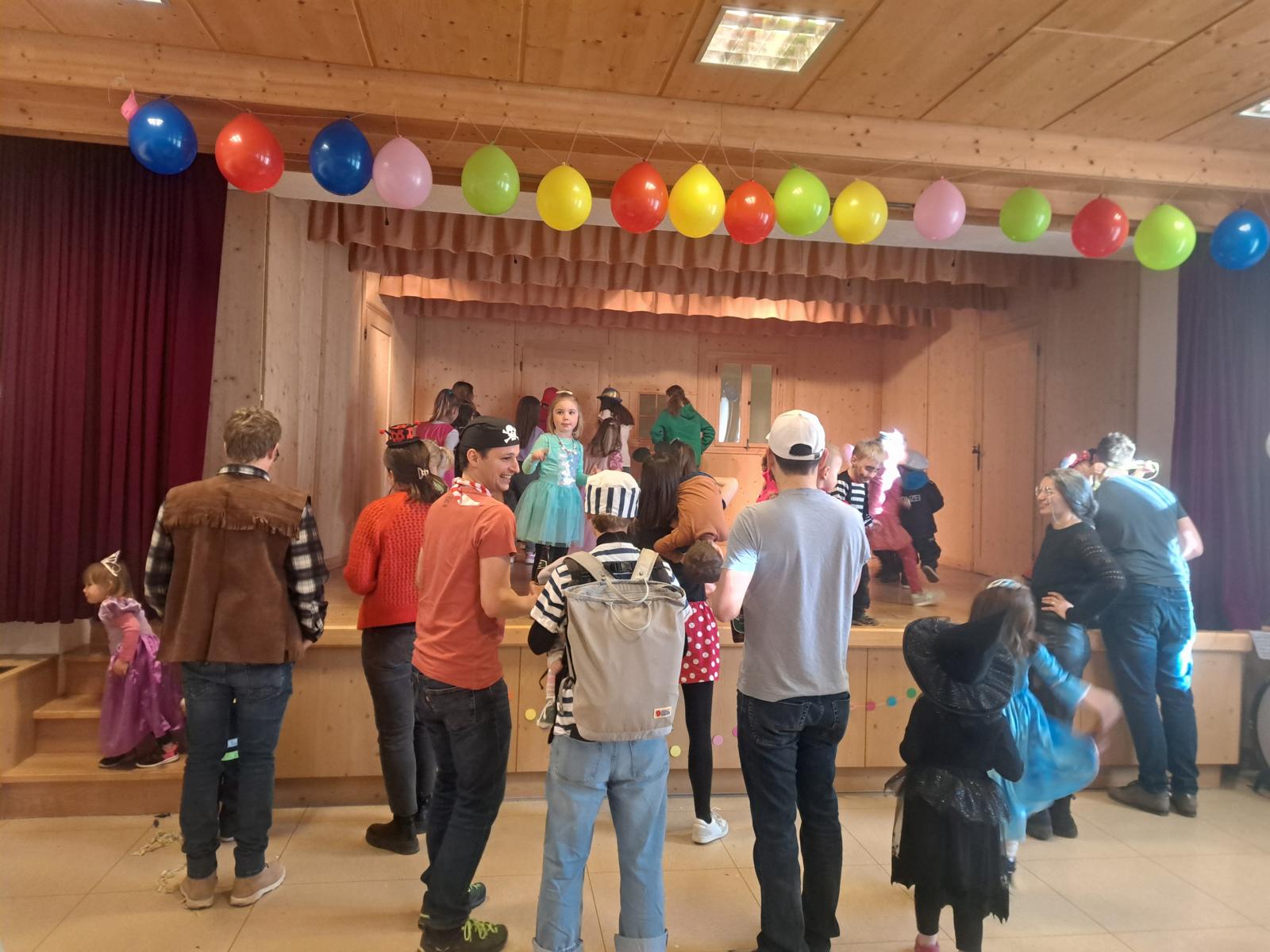 Bei der anschließenden Aftershowparty im Kultursaal blieben die Sessel nicht lange besetzt. Von jungen Mädels animiert, tummelten sich bald Piraten, Polizisten, Prinzessinnen, Clowns und unzählige Arten von Tieren auf der Bühne und tanzten zu bekannten Ohrwürmern, ehe es bei der Polonaise auch für die Erwachsenen kein Entrinnen gab.
