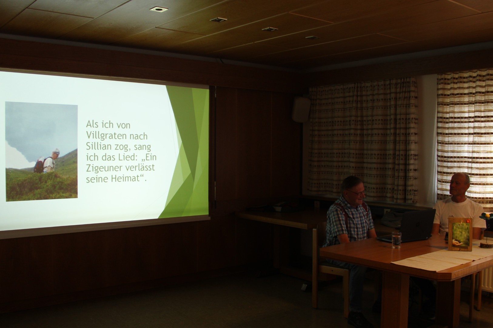 Für die erste „Doze ilstunde“ am Vormittag des 6. Oktober 2025 hatte sich Bernhard Senfter, „der letzte Knecht bei Lenzer“, bereit erklärt, sein abenteuerliches Leben Revue passieren zu lassen. Fast professionell – mit Bildern und Kurztexten auf der Leinwand und assistiert von Gabriel Wurzer – trat Bernhard vor die Besucher im vollbesetzten Sitzungsraum.