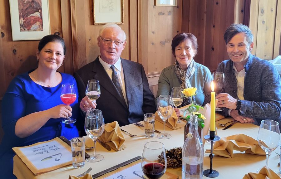 Daneben war er mit großem Eifer in der Pfarre tätig (je zehn Jahre im Pfarrgemeinde- und Pfarrkirchenrat sowie Lektor und Kommunionhelfer 1975-2020), weiters als Gemeinderat 1998-2022 (vier Perioden). Auch in den Dorfvereinen engagierte er sich: Jungbauernobmann 1969-1972, mehrere Jahre Schilanglauf- und Eisstockfunktionär der Sportunion und Feuerwehrmitglied seit 1965. Besondere Verdienste erwarb er sich für die Schützenkompanie, in der er 1981 bis 1993 Obmann war und 1993 bis 2014 als Jungschützenbetreuer sich um über 30 Jungschützen sorgte und den Nachwuchs der Kompanie sicherte. Einem solch vorbildlichen Einsatz in Beruf und Dorfgemeinschaft gebührten natürlich Ehrungen, zuerst bei den Vereinen, dann durch das Land Tirol mit der Vereinsnadel in Gold 2006 und der Verdienstmedaille 2015. Den schönsten Dank wünschen wir dem Jubelpaar für die Zukunft, nämlich weitere gesunde und frohe Jahre im Kreise der Familie. KS