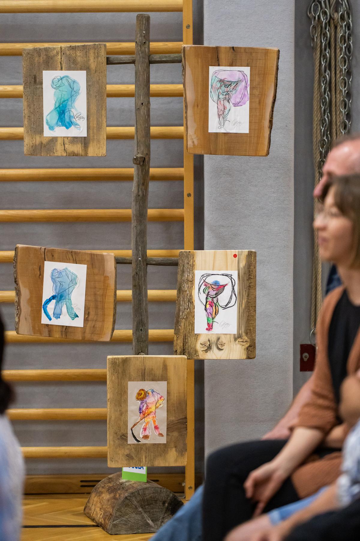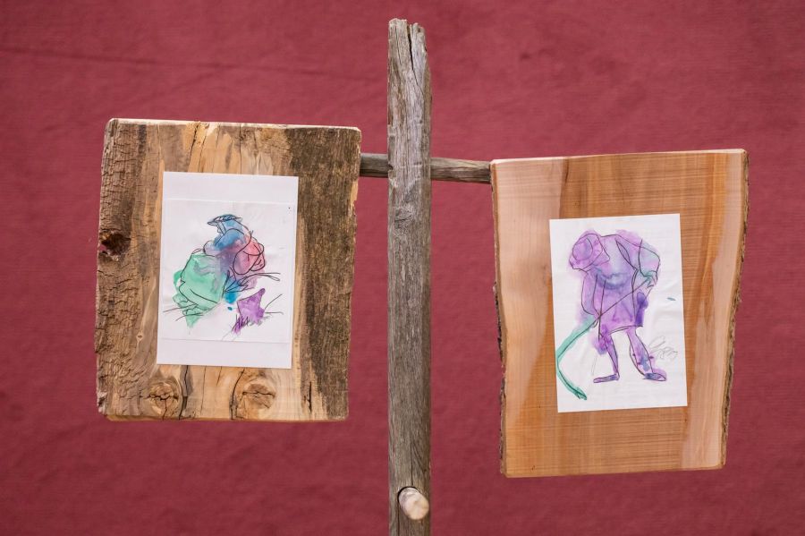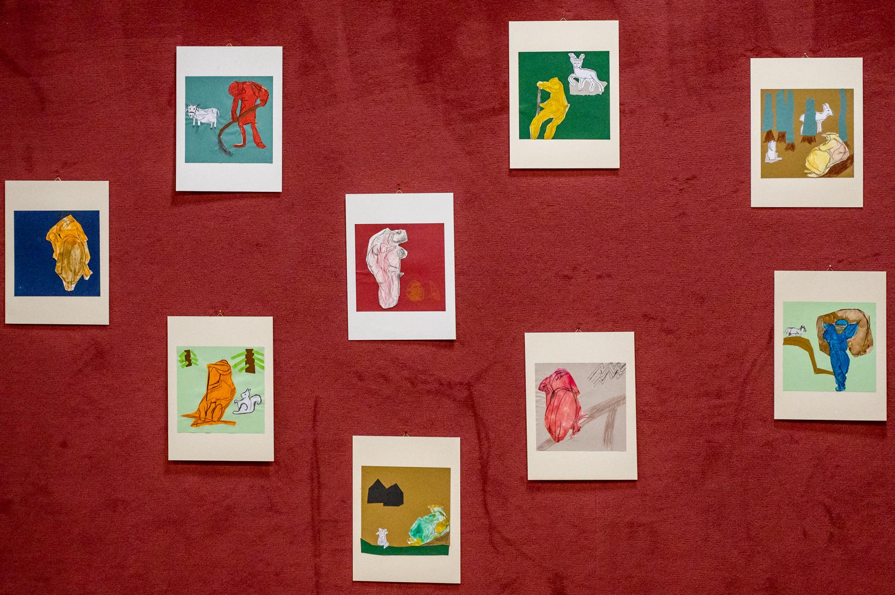 Gesagt, getan. Voller Eifer machten sich alle an die Ausgestaltung der Skizzen mit verschiedenen Techniken – Aquarellmalerei, Buntstifte und Buntpapier wurden verwendet, sogar eigene Geschichten entstanden, da eine Vorgabe lautete: Die Figur trifft eine andere Figur – egal ob Tiere, Pflanzen oder Menschen.
