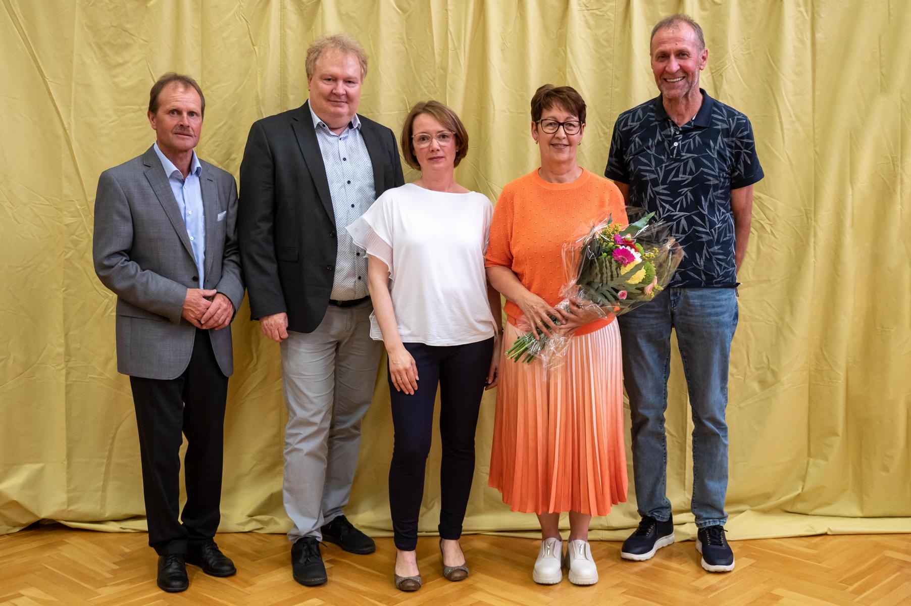 Da die Direktorin Katharina Valtiner mit 01.Oktober in Pension geht, wurde sie im Zuge dessen auch gleich verabschiedet. SQM OSR Thomas Greuter und Bürgermeister Franz Webhofer dankten für die jahrelange gute Zusammenarbeit und wünschten eine gute und gesunde Pension. Die SchülerInnen und Lehrerkolleginnen hatten ein lustiges „Abschiedsprogramm“ vorbereitet und die neue Schulleiterin VOL Barbara Kraler führte schwungvoll und gekonnt durch das Programm.
