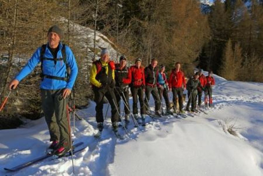 Der Wind ließ uns ein wenig frieren, sodass die nassen Kleider schnell gewechselt waren. Natürlich sollte das gemeinsame Foto nicht fehlen, ein neuer Rekord der Schiwanderer war ja auch zu verzeichnen (10 Männer und 2 Frauen).
