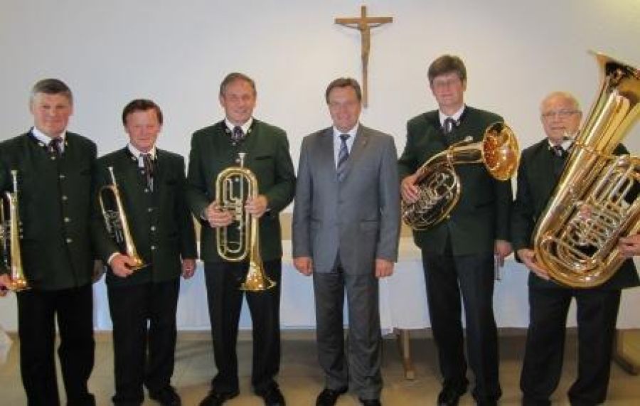 Als Einleitung zur Bürgermeisterkonferenz spielte das Bläserquintett der Bundesmusikkapelle Strassen einige Weisen. Für das Gruppenfoto stellt sich der Landeshauptmann gerne in die Bildmitte.