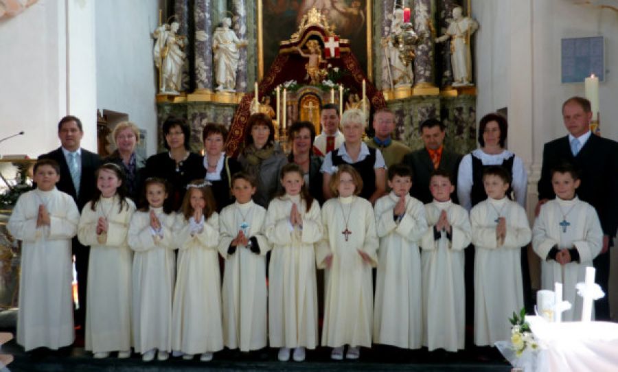 Am Sonntag, den 25. April 2010, feierten 11 Kinder aus unserer Gemeinde in der Dreifaltigkeitskirche Strassen das Fest der "Ersten heiligen Kommunion". Für die musikalische Umrahmung sorgte der Kinderchor Strassen unter der Leitung von Verena Mair.