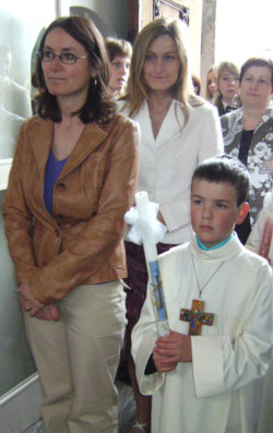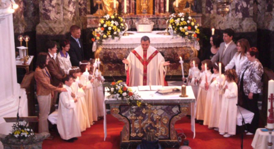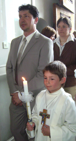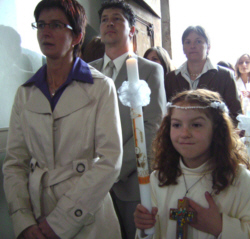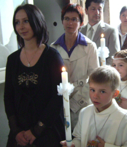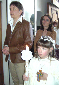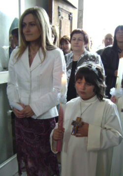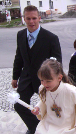 Nach dem Einzug von der Volksschule in die Dreifaltigkeitskirche - begleitet von der Bundesmusikkapelle Strassen - fand die Erstkommunionfeier mit Pfarrer Mag. Hudson Lima Duarte statt. Den Festgottesdienst umrahmte musikalisch der Kinderchor unter der Leitung von Verena Mair.