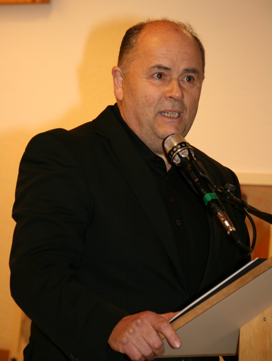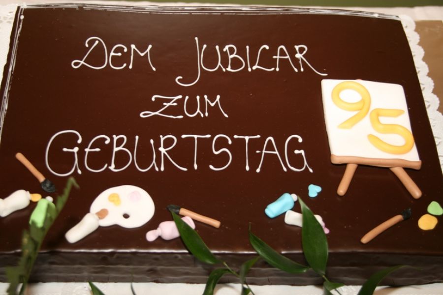 Der Strassener Kultursaal, erfüllt mit den Klängen der Bläsergruppe und im Vorraum mit einem großzügigen Buffet ausgestattet von den Ortsbäuerinnen, schuf zusammen mit den über 30 ausgestellten Werken und den festlich gekleideten Besuchern ein kleines Gesamtkunstwerk, bei dem das Geburtstagskind doch vielseitig präsent war. Hauptmann Stephan Golmayer gratulierte in Tracht namens der Schützenkompanie dem Ehrenmitglied, und Bgm. Franz Webhofer, dem die offizielle Eröffnung oblag, erinnerte an die vielfältige, oft selbstlose Mitarbeit des Ehrenbürgers in der Gemeinde, von der Mitgestaltung von Festen bis zur Renovierung der Kirchen. Hermann Gassler, führte durch den offiziellen Teil des Abends und freute sich mit den Verwandten über den Besuch zahlreicher prominenter Gäste, wie der Bürgermeister der Nachbargemeinden, des Ltgs-Abg. Hermann Kuenz mit Gattin, der Museumsdirektoren Silvia Ebner (Schloss Bruck), Dr. Leo Andergassen (Schloss Tirol), Dr. Johann Kronbichler (Diözesanmuseum Brixen) und nicht zuletzt von Msgr. Josef Haselwanner, dem persönlichen Freund des Künstlers und Vertreter der Diözese Innsbruck. KS