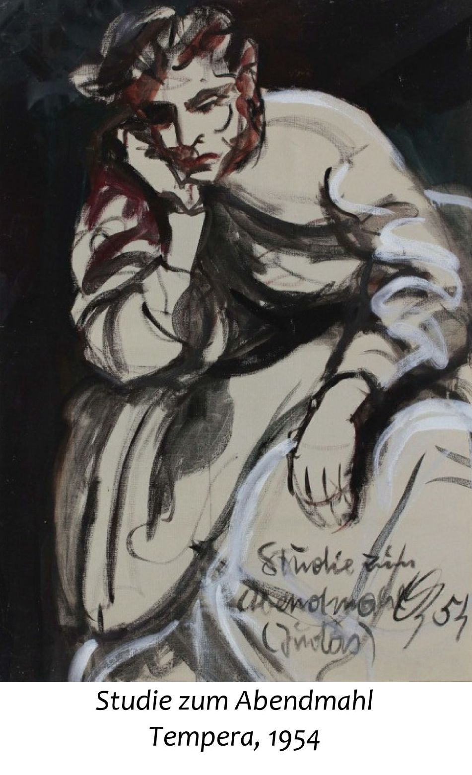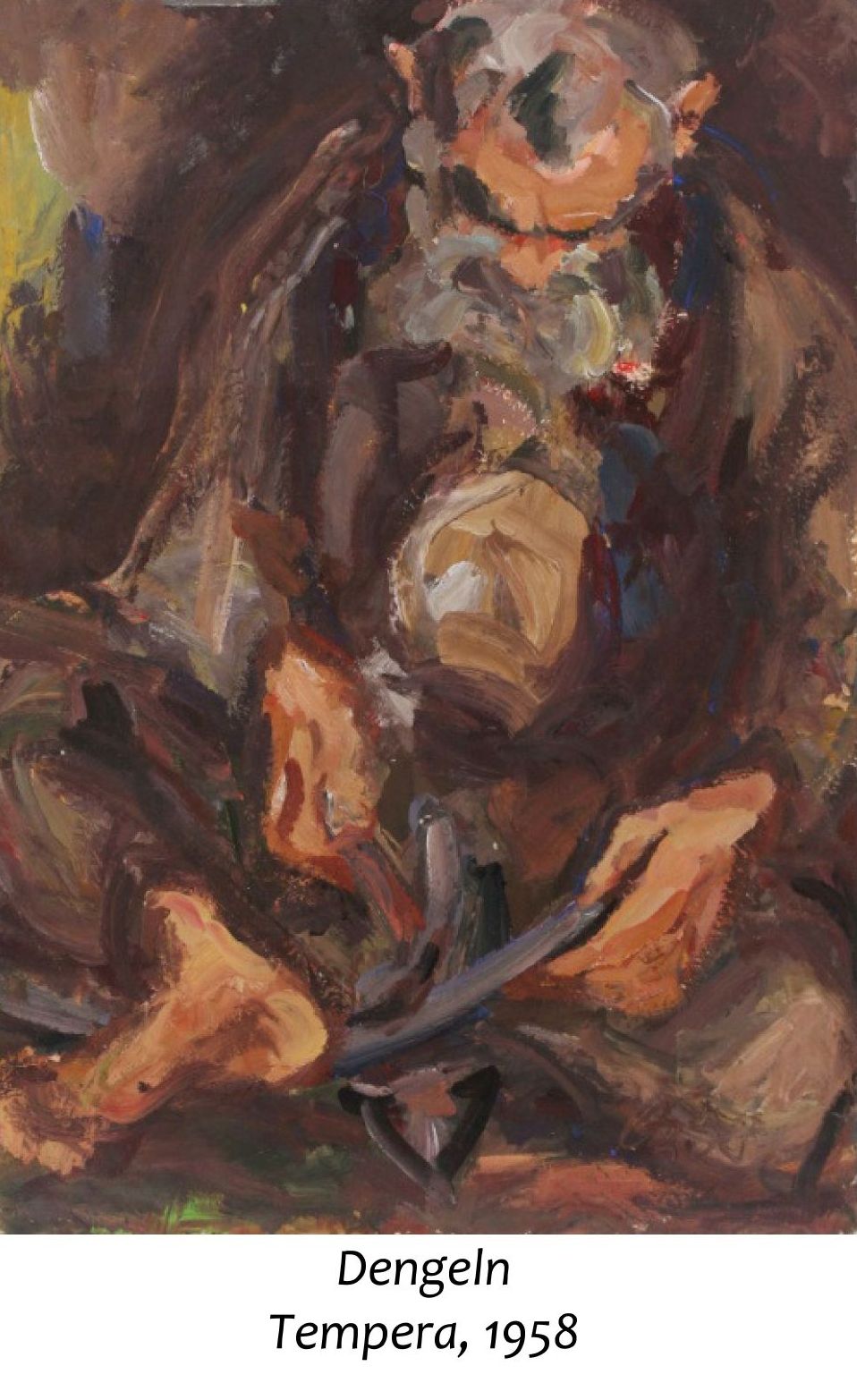 Oswald Kollreider (Selbstbildnis 1952) mit seinen Nichten und Neffen, hinten Oswald, Peter, Hans,