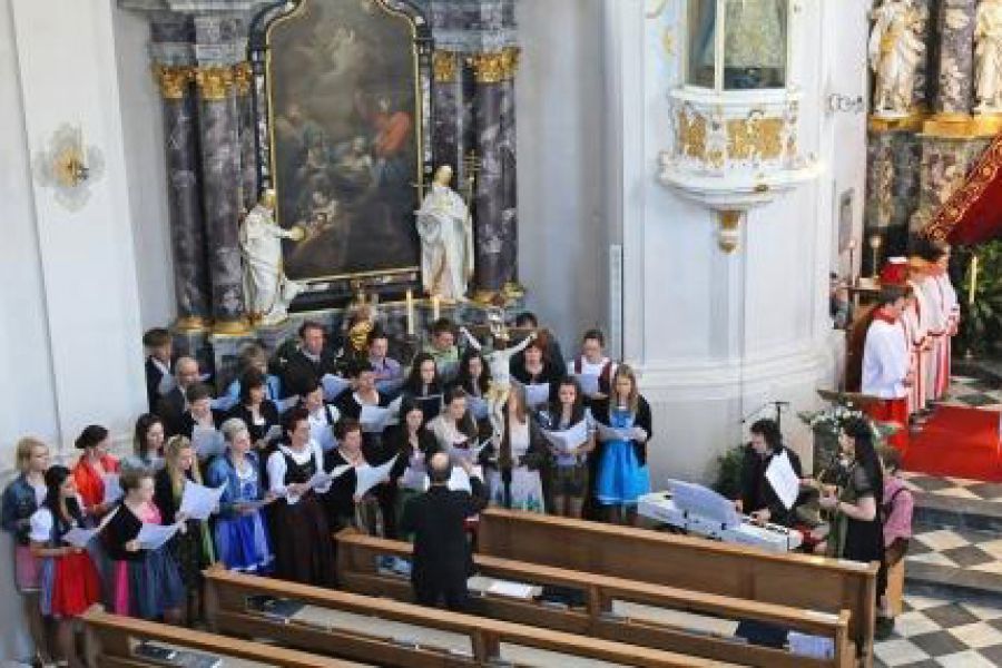 Am Pfingstsonntag, 24. Mai 2015, erfreuten der Kirchenchor und der Jugendchor gemeinsam die Gottesdienstbesucher mit modernen, festlichen Melodien und Klängen. Auf dem Programm standen die "Erste Messe" von Gerhard Schacherl sowie die Gesänge "Komm, o komm, du Tröster mein" und "Du Herr, gabst uns dein Festes Wort".