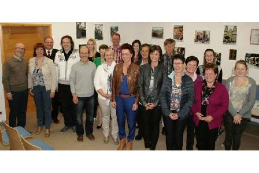 Zum Bild: Der neue Vereinsvorstand - vorne von links: Karl Schett, Anna Valtiner-Wieser, Alexander Bodner, Alfred Schett, Verena Mair, Helene Huber, Claudia Walder und Kathrin Valtiner - mit seinen Sängerkollegen und Vize-Bgm. Karl Mair